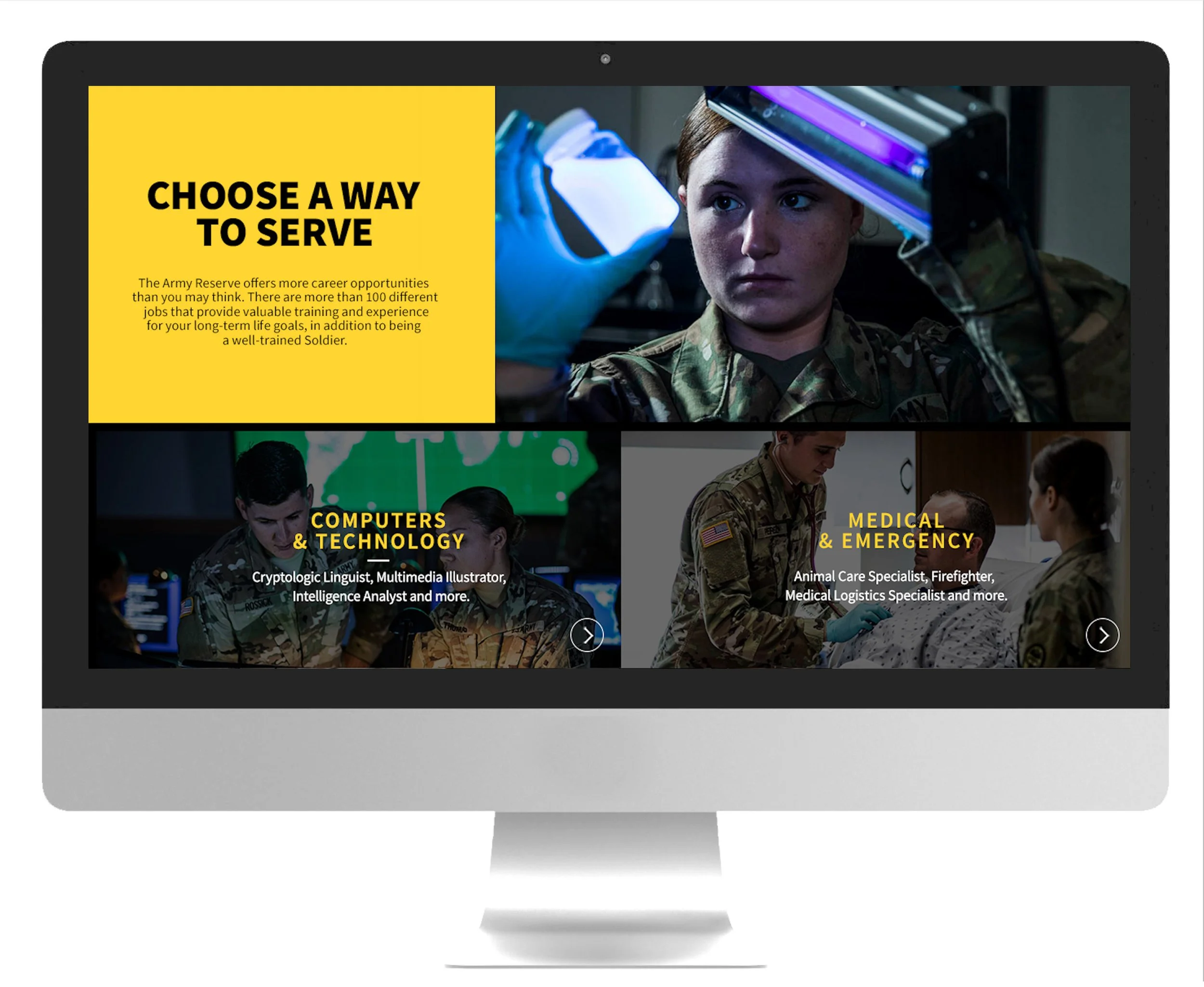 Complete redesign and rewrite of the national US Army Reserve recruiting site, done with McCann/ MRM.